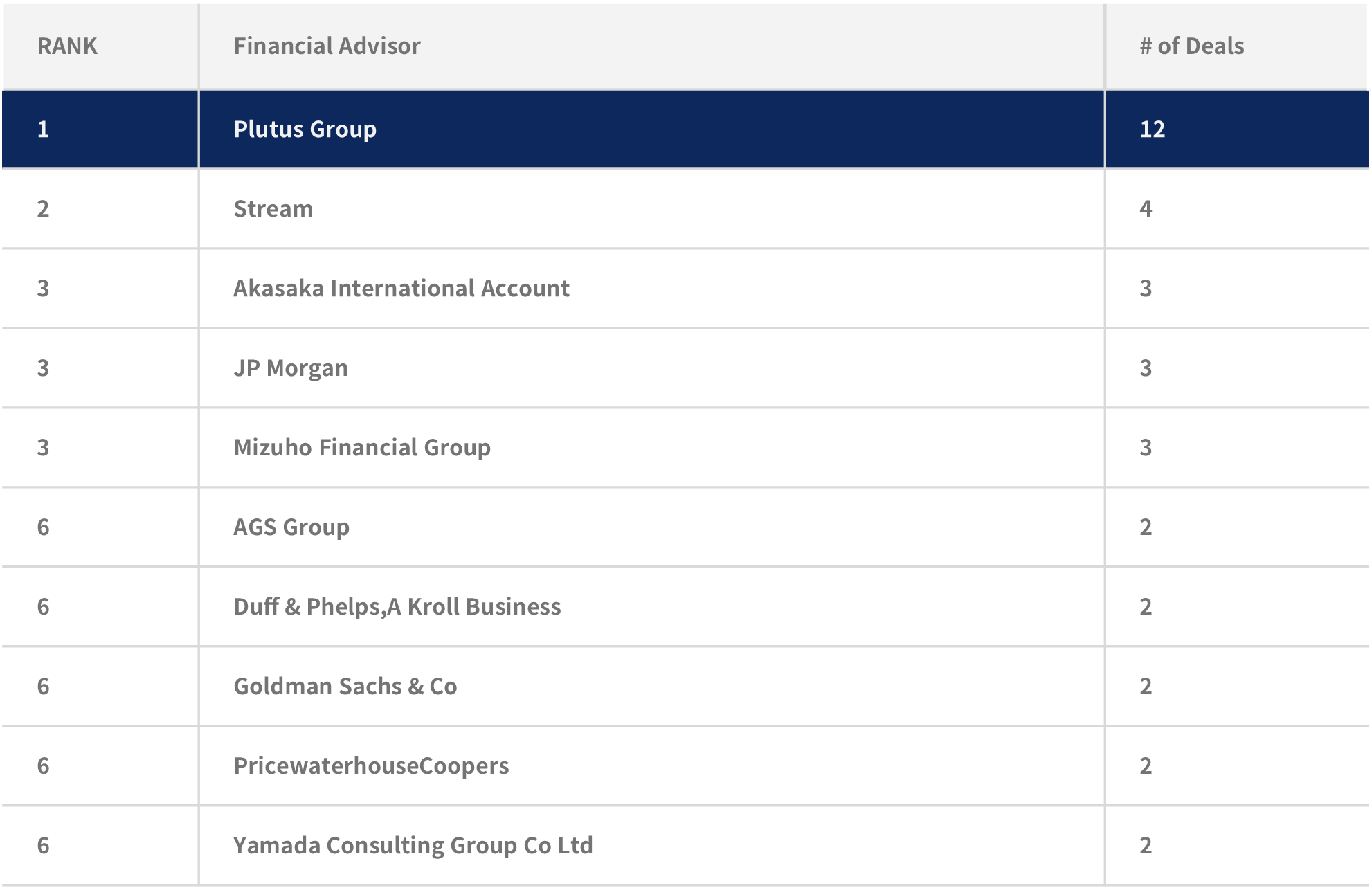 Japan Fairness Opinion Financial Advisor Rankings Full Year 2025