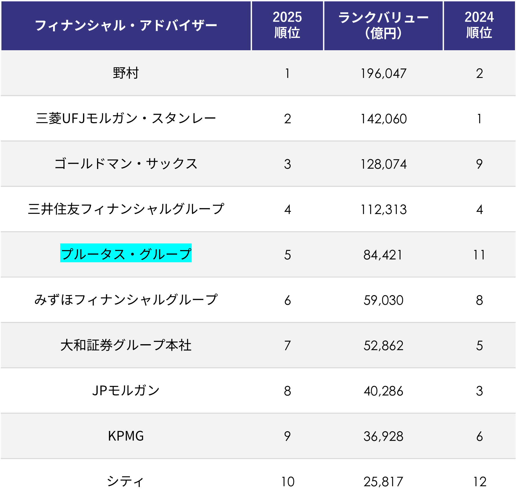 LSEG(旧リフィニティブ)からGlobal M&A Review(2025年上半期)ファイナンシャル・アドバイザー ランキングが発表され、国内のフェアネス・オピニオン部門にて、プルータス・コンサルテ...