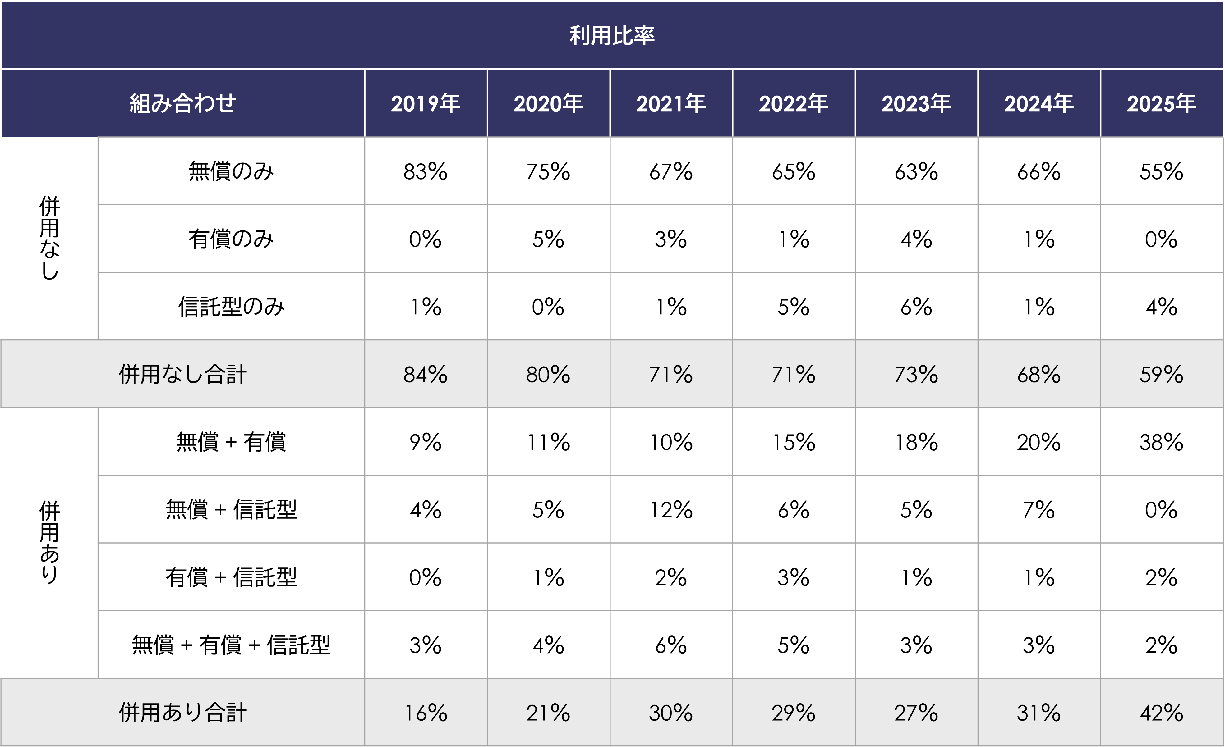 2025年の調査結果からは、「無償ストック・オプション(税制適格ストック・オプション)」が盤石な地位を占める一方で、補完的に「有償ストック・オプション」を活用するハイブリッド型がより浸透していることが確認されました。